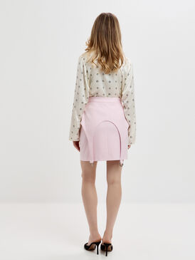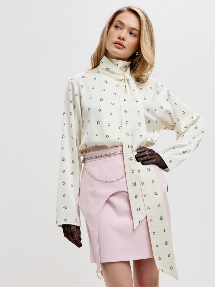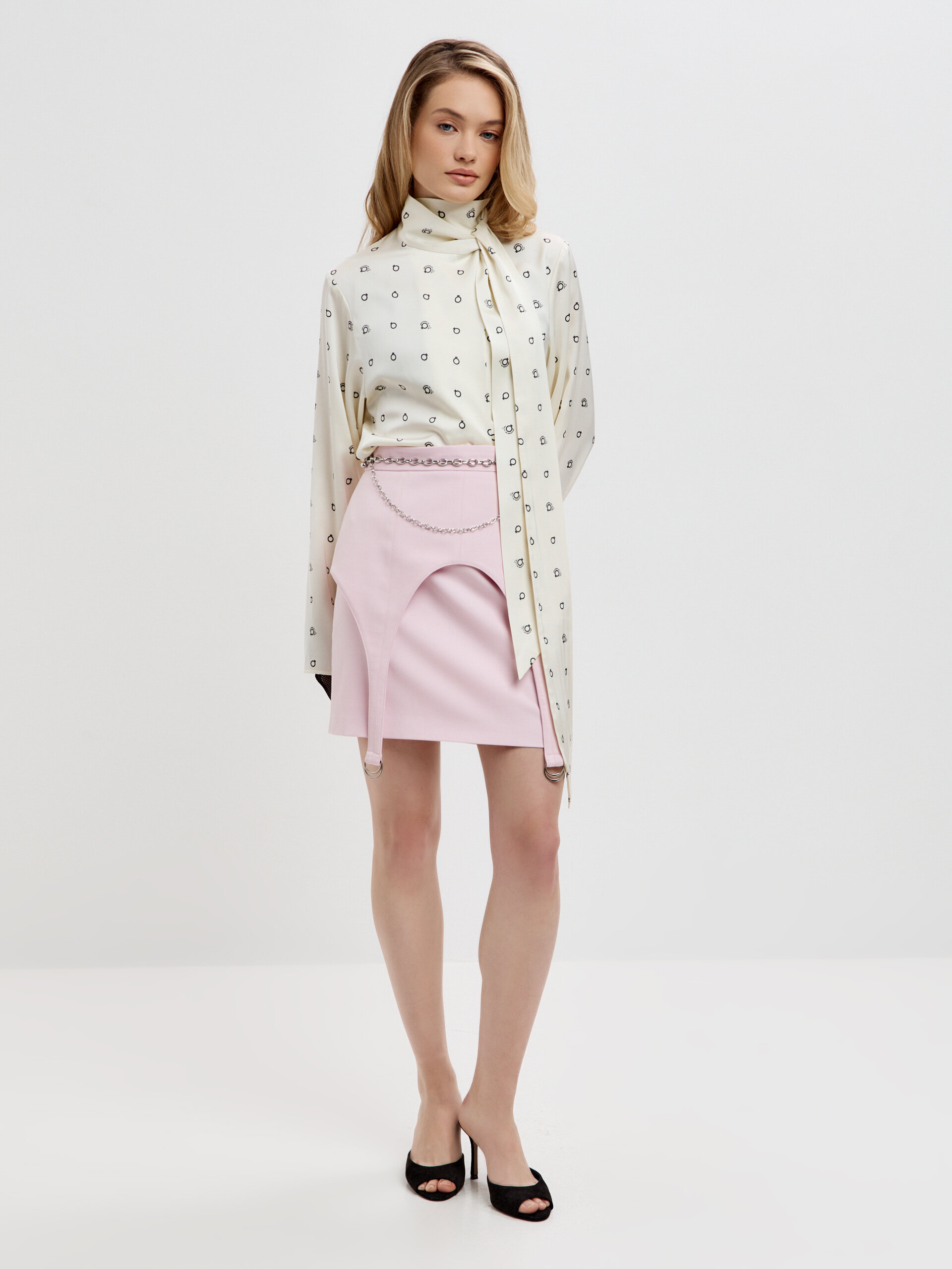 Баска с имитацией пояса для чулок сочетает в себе классику и современные тенденции. Пастельно-розовый цвет придаёт образу лёгкость, а детали в виде подтяжек добавляют нотку дерзости. Высокая посадка подчёркивает талию, делая силуэт более женственным. Идеальный выбор для создания элегантных и запоминающихся образов.