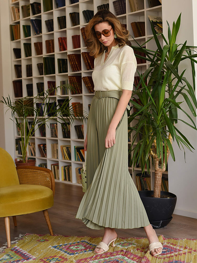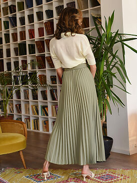 Юбка в пол сшита из воздушной плиссированной ткани, которая красиво развевается на ветру. Простой свободный крой сочетается со смелым животным принтом, поэтому юбка смотрится оригинально, и в то же время она не перегружена деталями. Благодаря посадке на резинке юбка комфортна в повседневной носке, а также подойдет женщинам с любыми пропорциям.