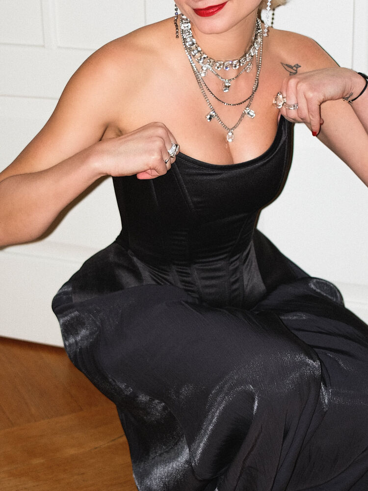 Измерения необходимо проводить в бюстгальтере. Разместив сантиметровую ленту под подмышечными впадинами, измерьте окружность груди по наиболее выступающим точкам груди. Лента должна располагаться горизонтально, прилегать к телу плотно, но не перетягивать его.