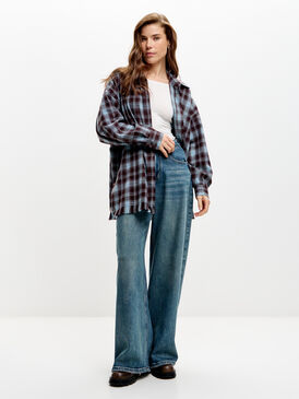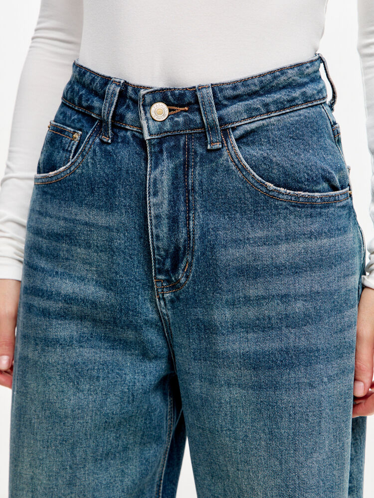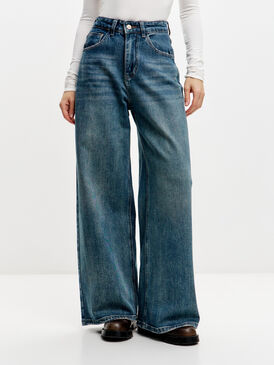 Джинсы свободного кроя в винтажном синем оттенке с лёгким эффектом потертости. Мягкий деним и расслабленная посадка создают комфорт при движении, а благородный тон делает модель универсальной для любых сочетаний — от базовых футболок до жакетов.