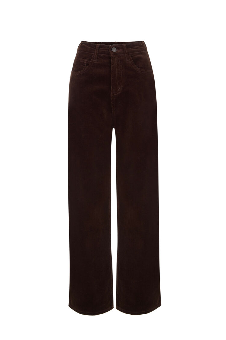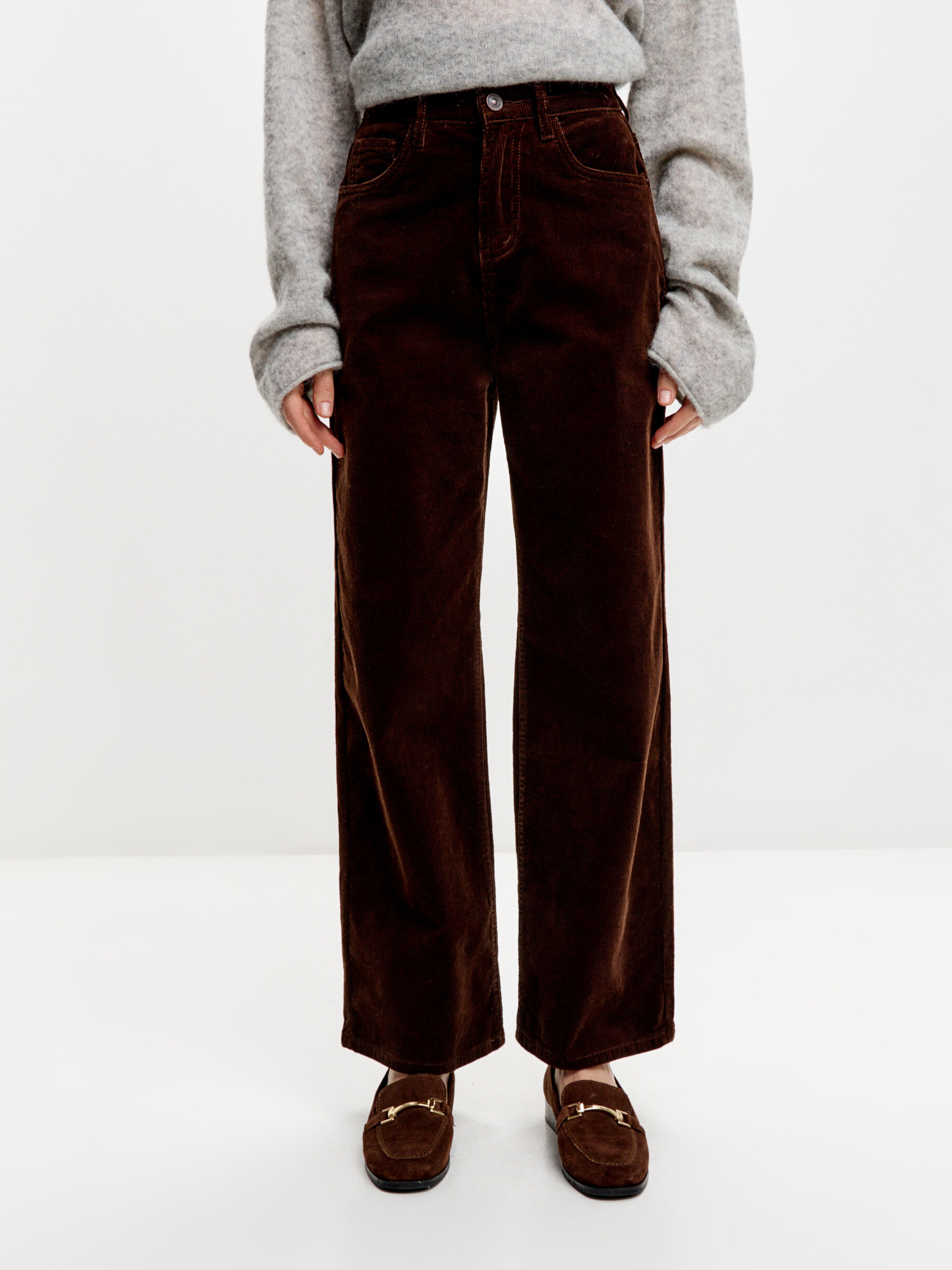 Прямые вельветовые джинсы в насыщенном шоколадном цвете — базовая модель с элегантным характером. Плотная фактурная ткань красиво держит форму, подчёркивая силуэт, а отсутствие резинки делает посадку аккуратной и изысканной. Отлично сочетаются с жакетами, водолазками и обувью на каблуке.
