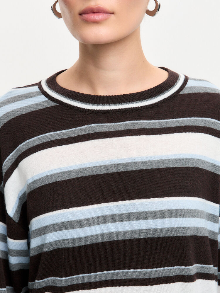 Измерения необходимо проводить в бюстгальтере. Разместив сантиметровую ленту под подмышечными впадинами, измерьте окружность груди по наиболее выступающим точкам груди. Лента должна располагаться горизонтально, прилегать к телу плотно, но не перетягивать его.