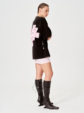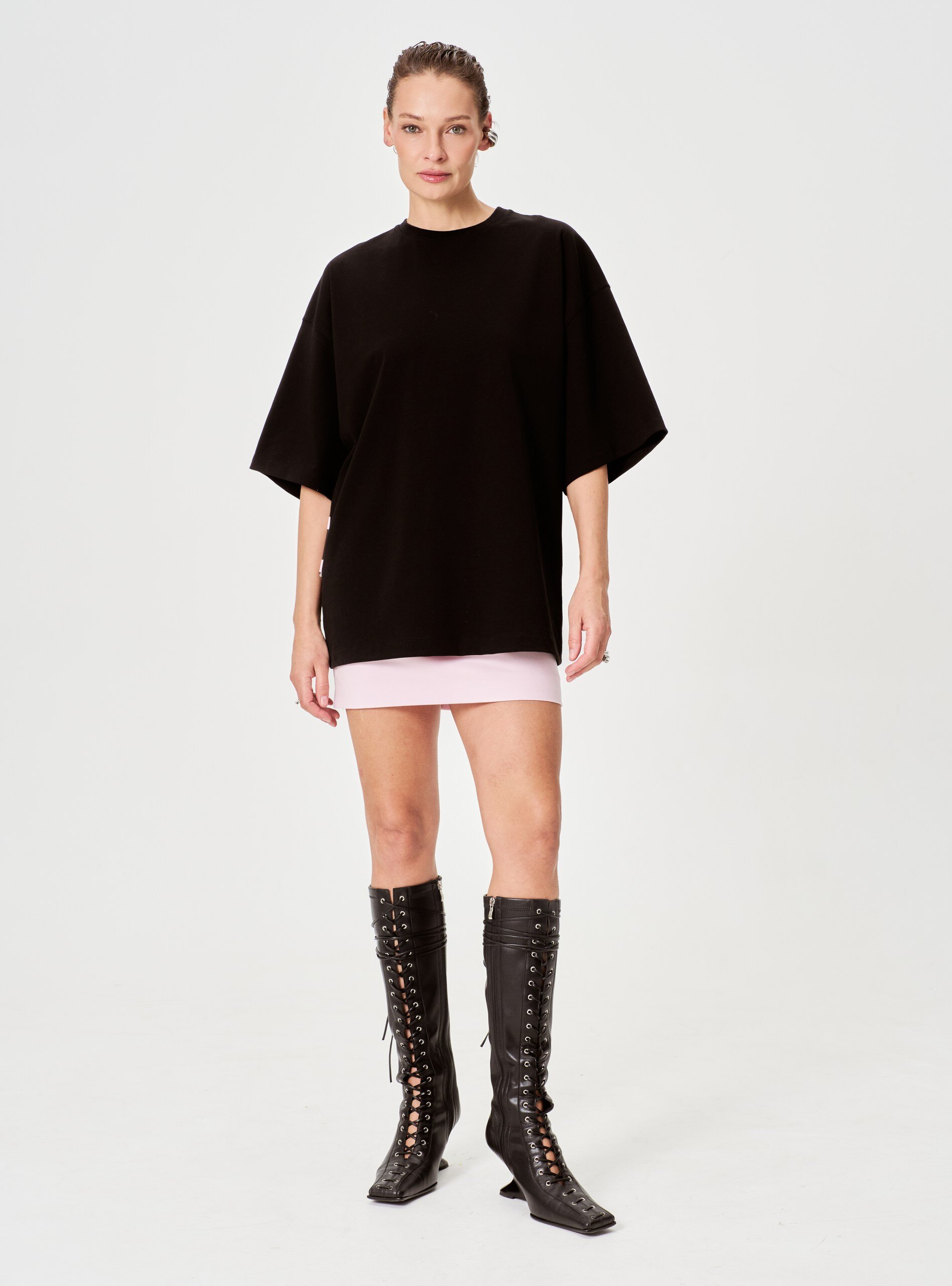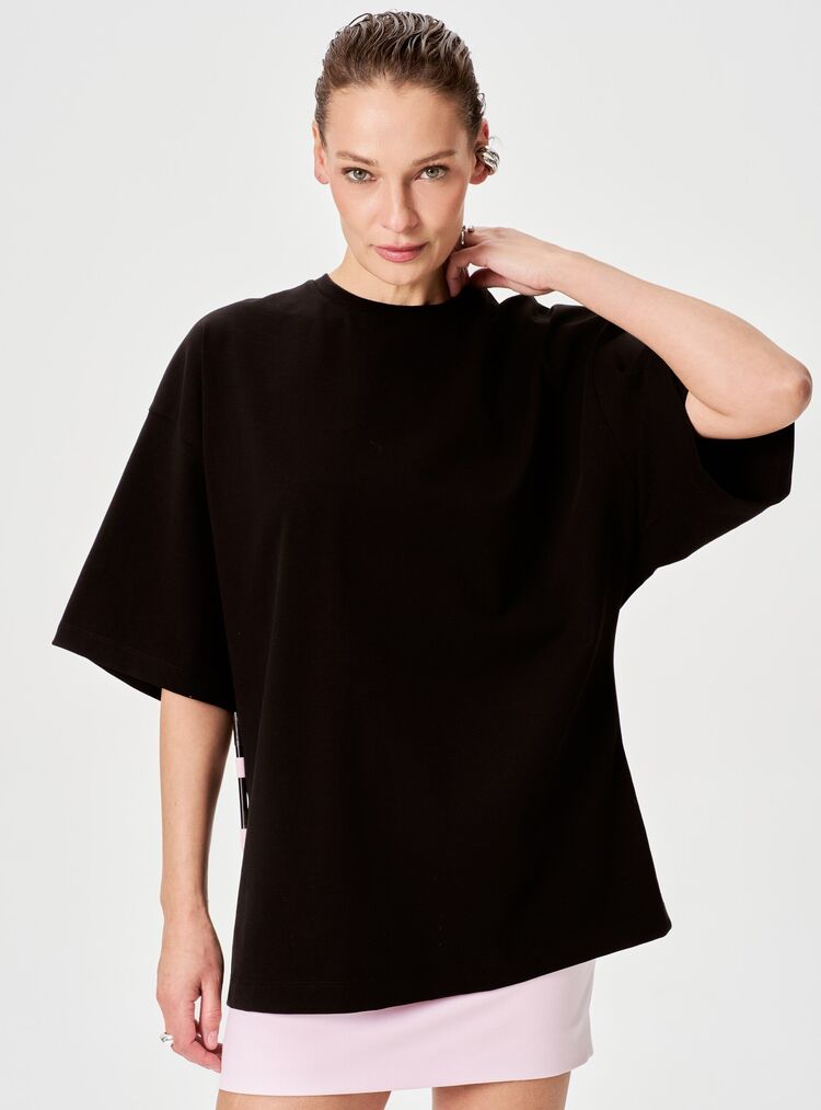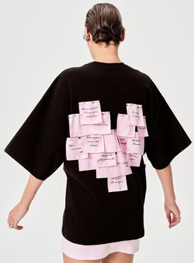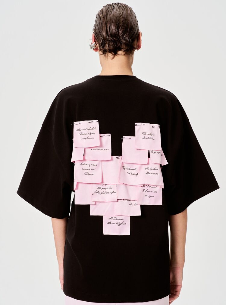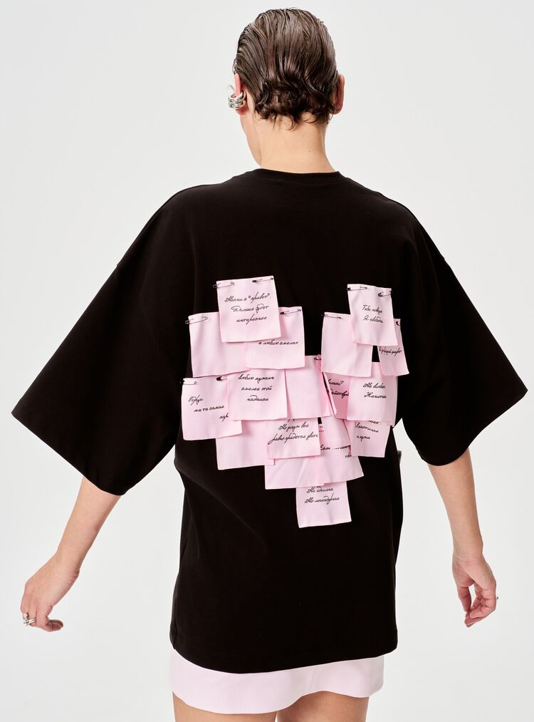 Футболка в оверсайз-фасоне — сочетание минимализма и креативного акцента! Главная «изюминка» модели — оригинальные декоративные стикеры на спине, на которых можно оставить свое послание.