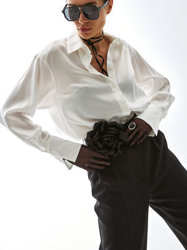 Мягкий, свободный, струящийся силуэт легко команируется с большинством современных образах: блузу можно использоваться в деловом, повседневном, романтическом стилях