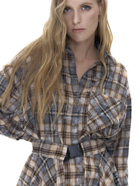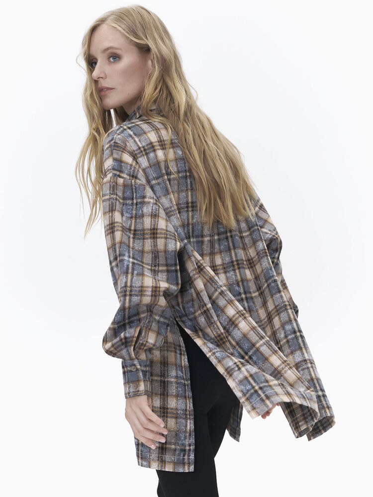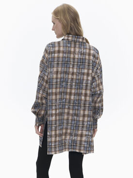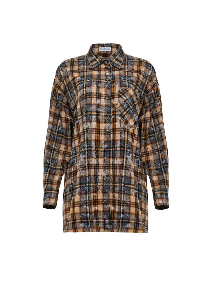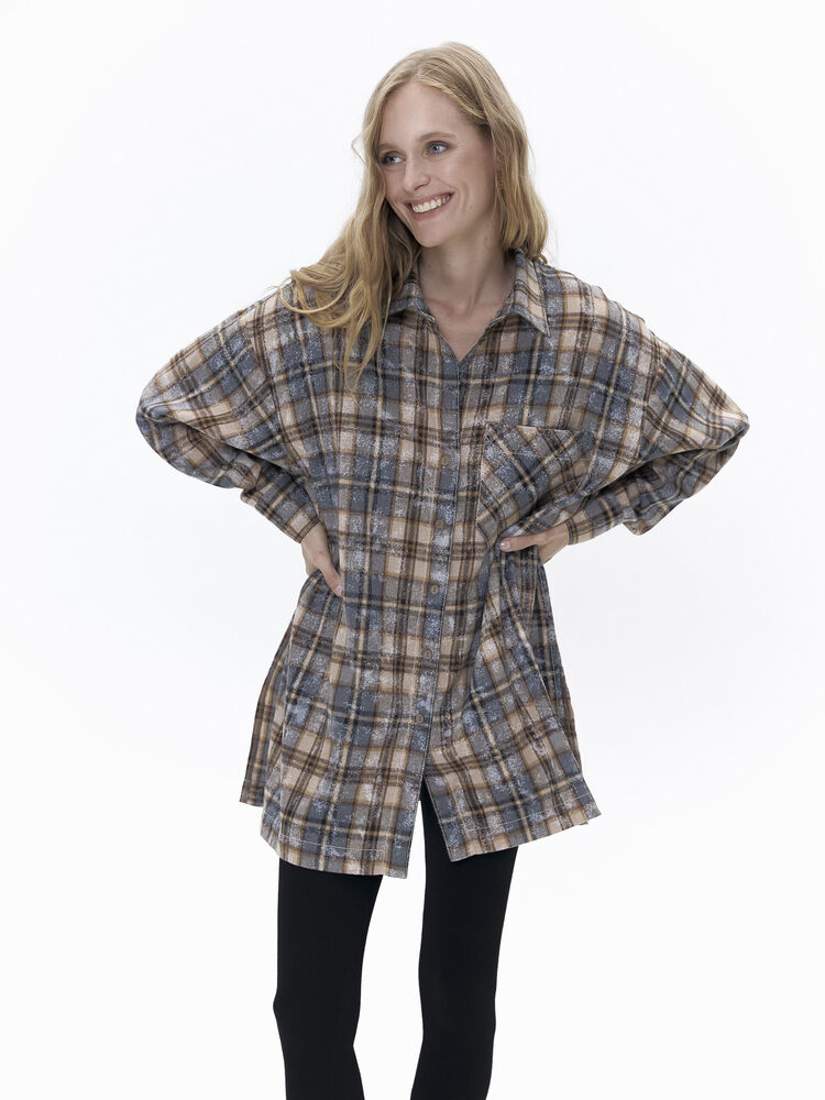 Рубашка оверсайз прямого кроя. Изделие удлиненное с боковыми разрезами, имеет спущенное плечо, один фигурный карман. Рубашка изготовлена из мягкого и приятного на ощупь хлопкового материала. Принт клетка — самый трендовый в 2024 году. Принт имеет эффект состаренности