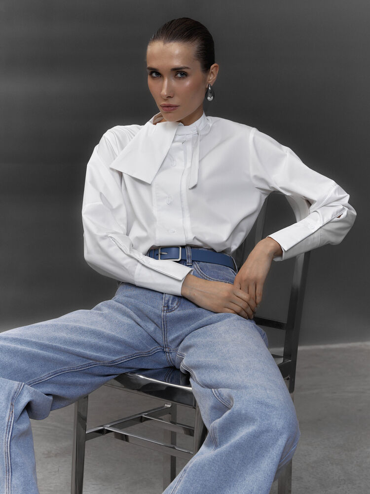 Рекомендуем сочетать блузу с костюмами для создания деловых образов или с джинсами - для более расслабленных, повседневных