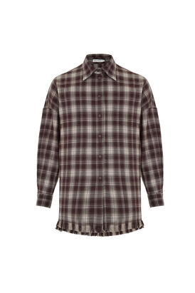 Рубашка свободного кроя в уютной клетке бежево-шоколадных оттенков — современное прочтение классики в стиле бохо. Низ изделия выполнен с необработанными краями, что добавляет лёгкой небрежности и характерного шарма. Мягкая ткань приятна к телу, а универсальная палитра позволяет сочетать модель с джинсами, юбками и вельветом, создавая стильные многослойные образы.
