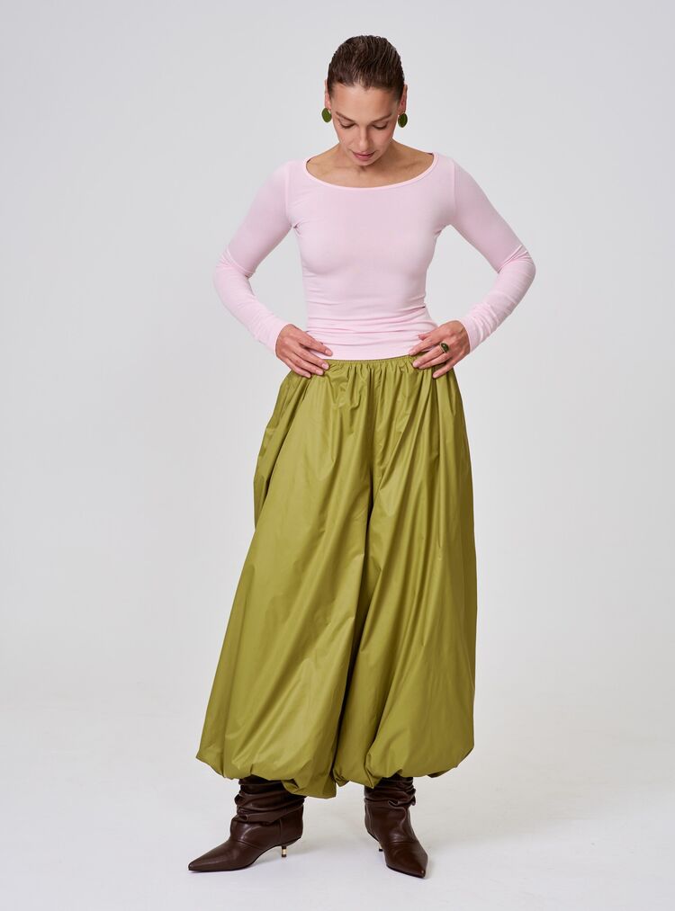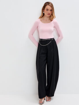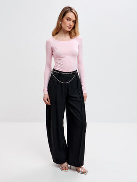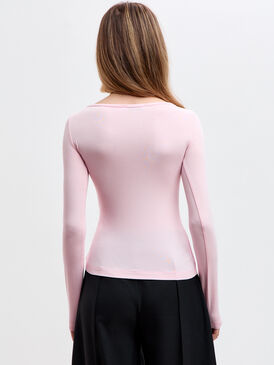 Нежно‑розовый лонгслив из вискозы с эластаном мягко облегает фигуру, подчёркивая силуэт благодаря приталенному крою. Лёгкая прозрачность материала придаёт образу деликатную воздушность и женственный шарм.