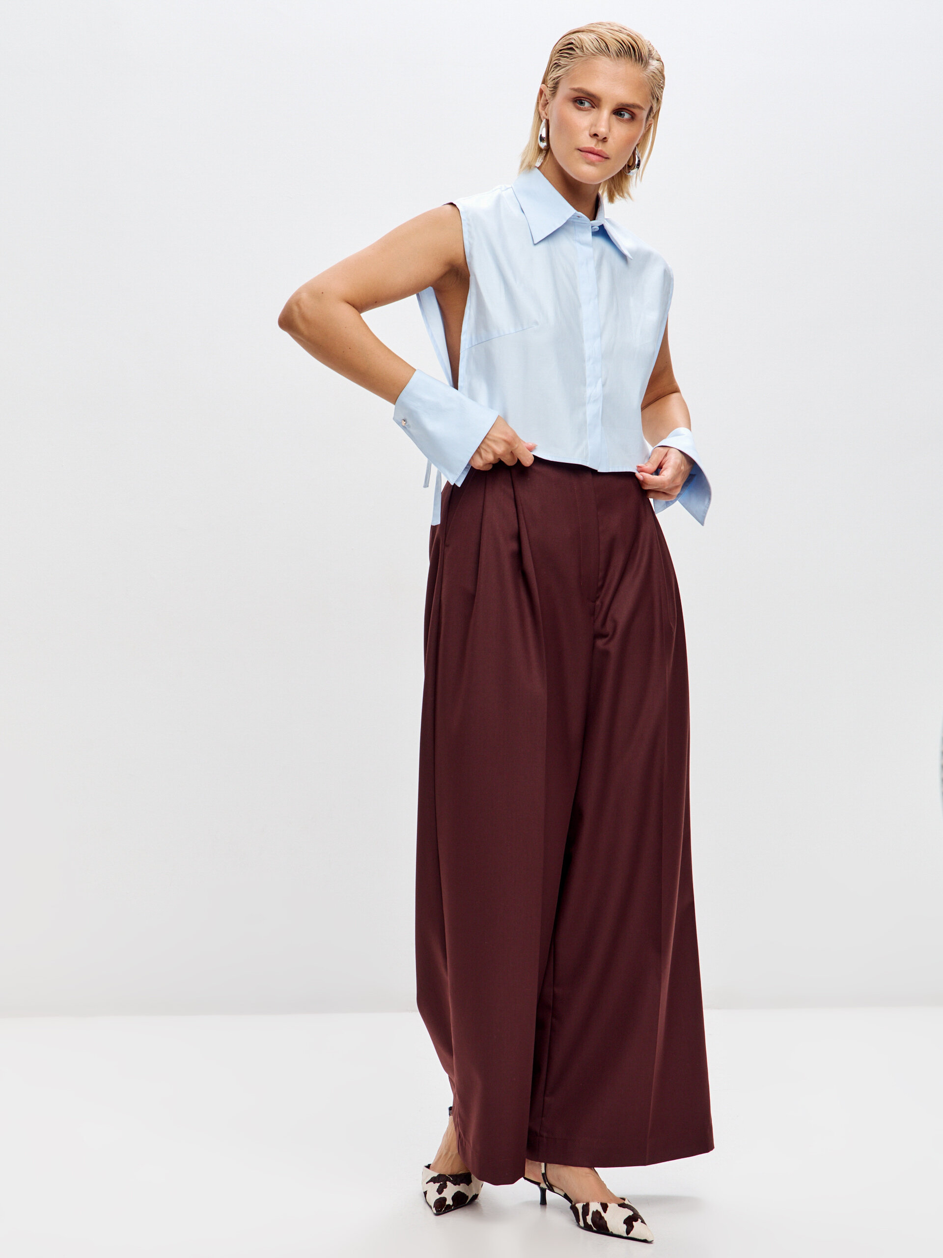 Манишка из хлопка в небесно-голубом оттенке. Имеет боковую регулировку для комфортной посадки. Отлично сочетается с манжетами артикул 24.47-50809, создавая цельный и необычный комплект.