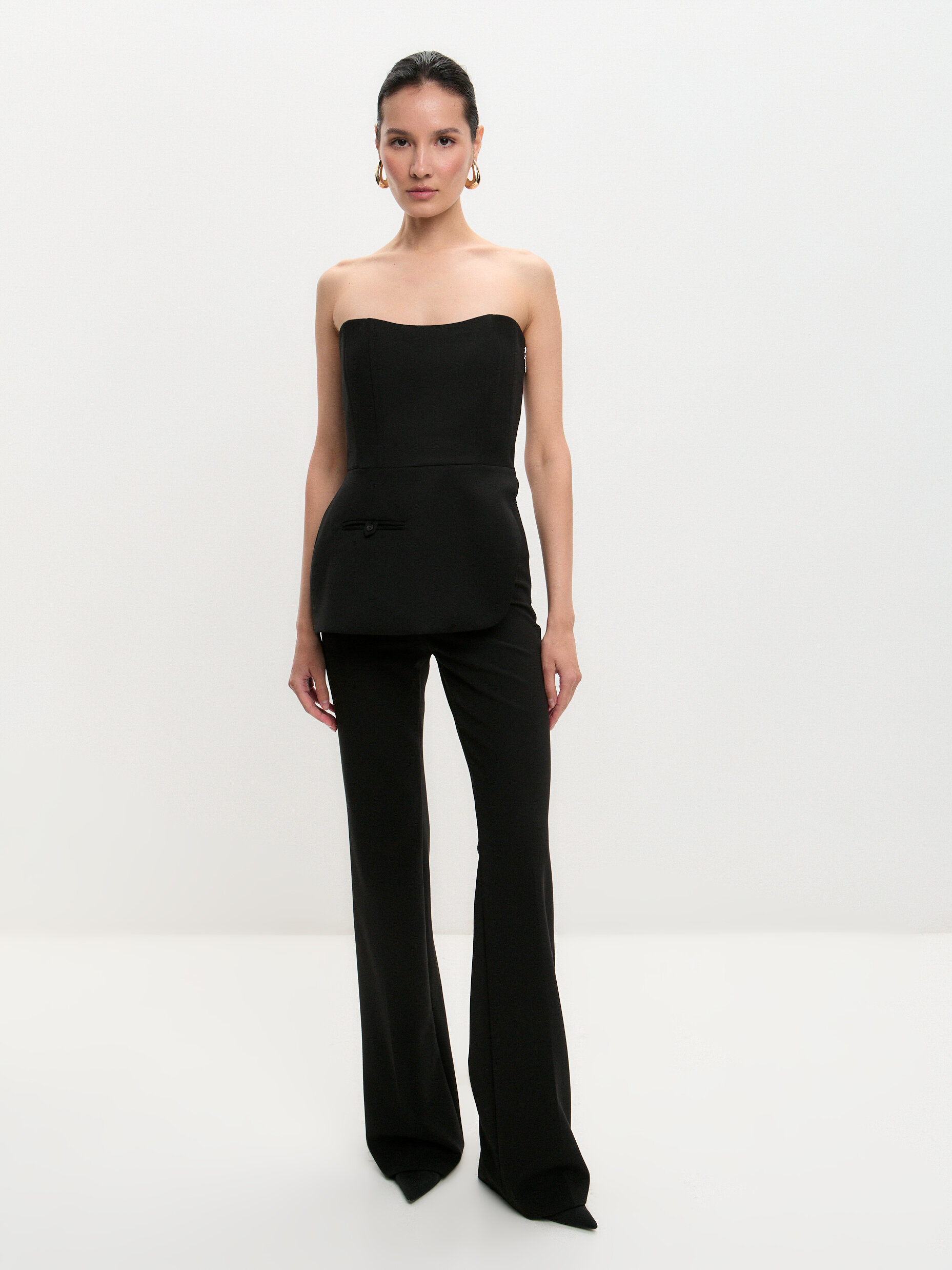 Корсет в чёрном цвете из костюмной ткани — стильное и практичное решение для создания выразительного образа. Боковая молния обеспечивает удобство при надевании, не нарушая лаконичность дизайна. Костюмная ткань придаёт изделию структуру и отлично держит форму, при этом комфортно облегая фигуру. Чёткие линии и строгий силуэт подчёркивают талию, визуально корректируя пропорции и добавляя образу элегантности. Чёрный цвет универсален: корсет легко комбинируется с разными элементами гардероба — от классических брюк до юбок различных фасонов. Модель подойдёт как для деловых луков (в сочетании с рубашкой и брюками), так и для более смелых образов с акцентными деталями.