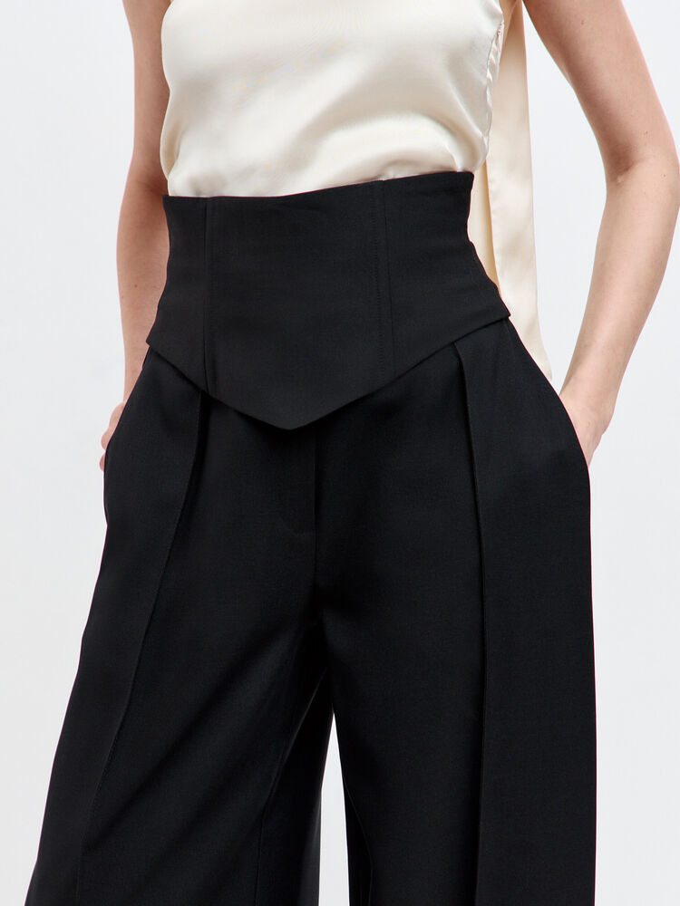 Чёрный пояс-корсет — стильное решение для акцента на талии. Удобная посадка, плотная структура, лаконичный дизайн. Подходит для ношения с платьями, блузами и топами. Превосходно корректирует силуэт, подчёркивает женственность. Практичный и модный элемент гардероба для любого случая.
