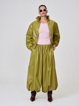 Стильный укороченный бомбер в зелёном цвете на кнопках — ваш ключ к комфортным и эффектным образам. Укороченный силуэт стройнит, утеплитель согревает в межсезонье, а сочетание полиэстера и вискозы гарантирует долговечность и приятные ощущения при носке. Простота ухода — ещё один плюс этой практичной модели.