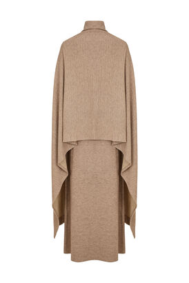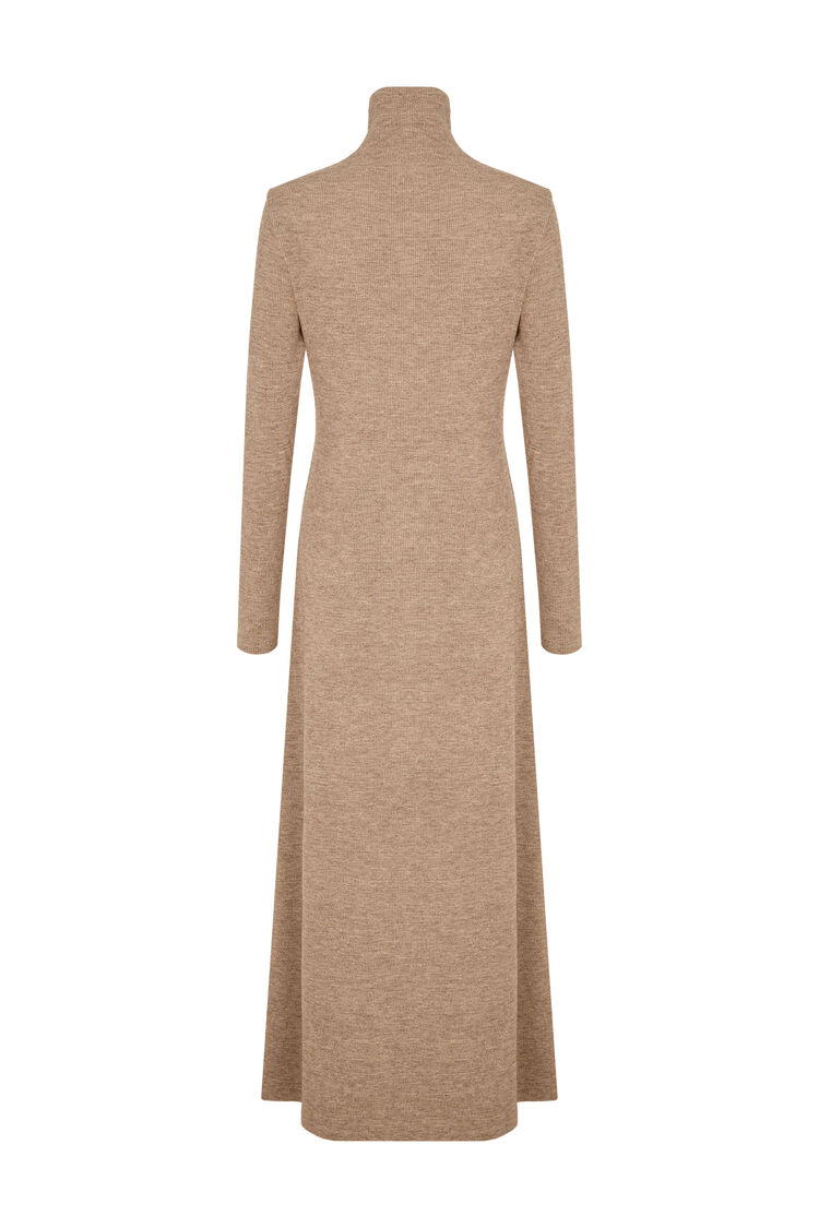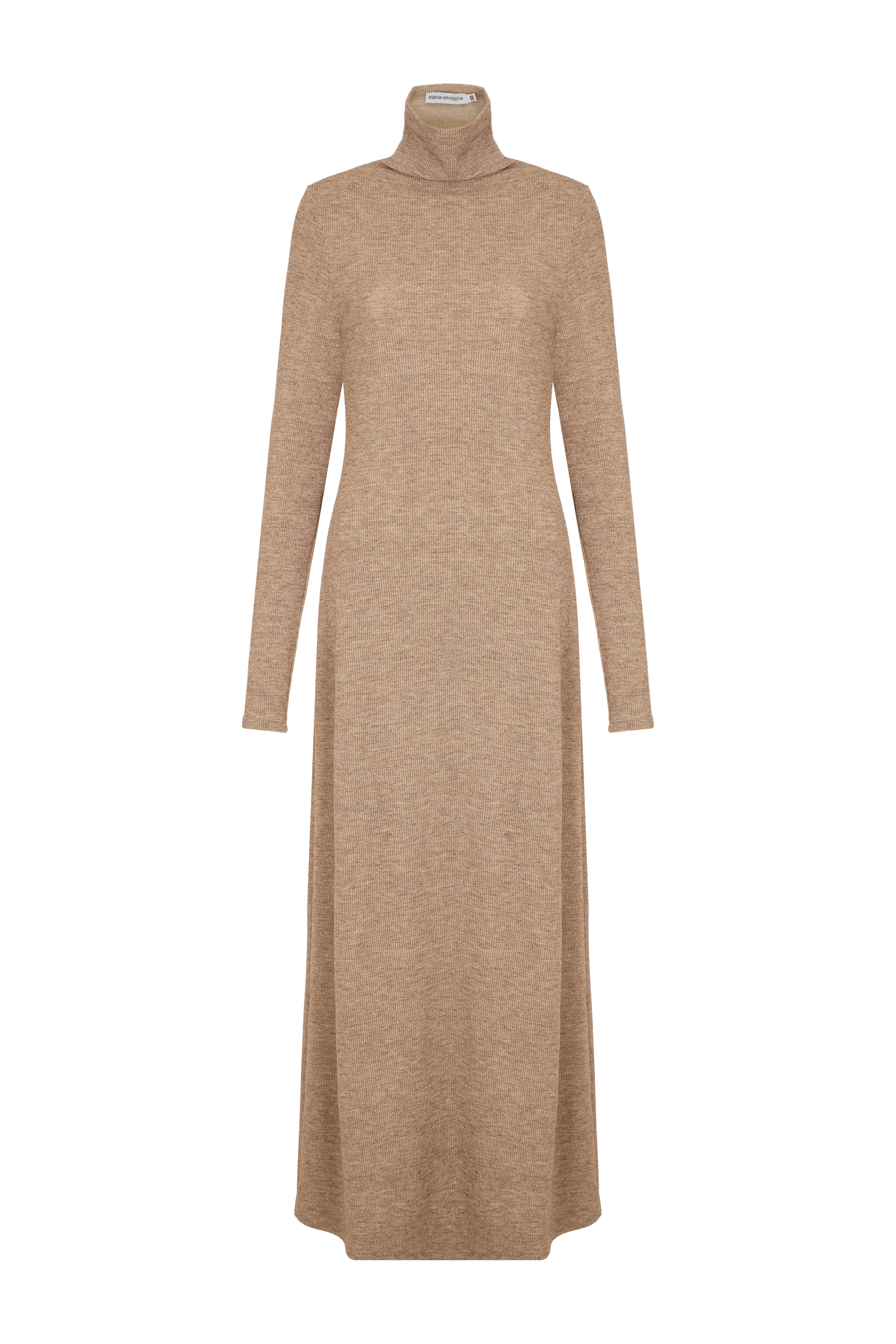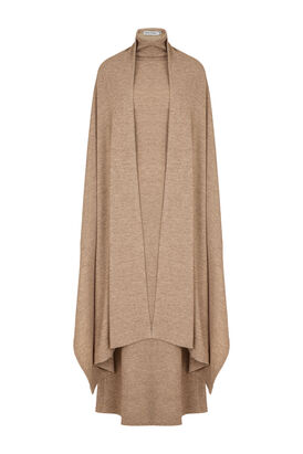 Элегантное бежевое платье-лапша из трикотажной ткани. Особенность модели — изысканно вшитый шарф, превращающий простое платье в эффектный наряд. Свободный, но продуманный крой подчёркивает достоинства фигуры, не ограничивая движений. Идеальный выбор для стильной женщины, ценящей комфорт и роскошь.