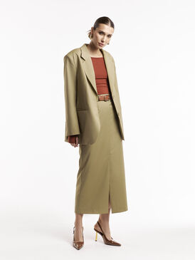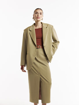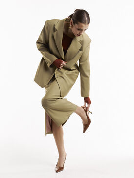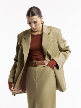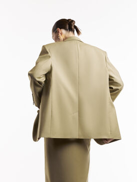Жакет свободного кроя в нежном фисташковом цвете с увеличенными плечами – элегантная и комфортная модель, создающая стильный силуэт. Благодаря свободной посадке жакет легко комбинируется как с классическими брюками, так и с расслабленными джинсами, подчеркивая актуальность образа.