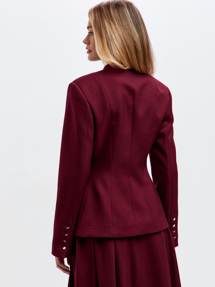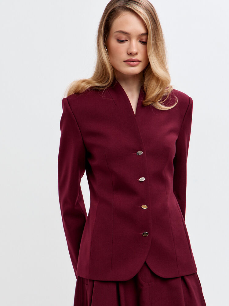 Этот приталенный жакет с воротником-стойкой — настоящая находка! Крой продуман до мелочей: подчёркивает талию, не сковывает движения. Воротник делает образ чуть более строгим, а пуговицы добавляют изюминку. Отличный выбор для тех, кто ценит стиль и комфорт.