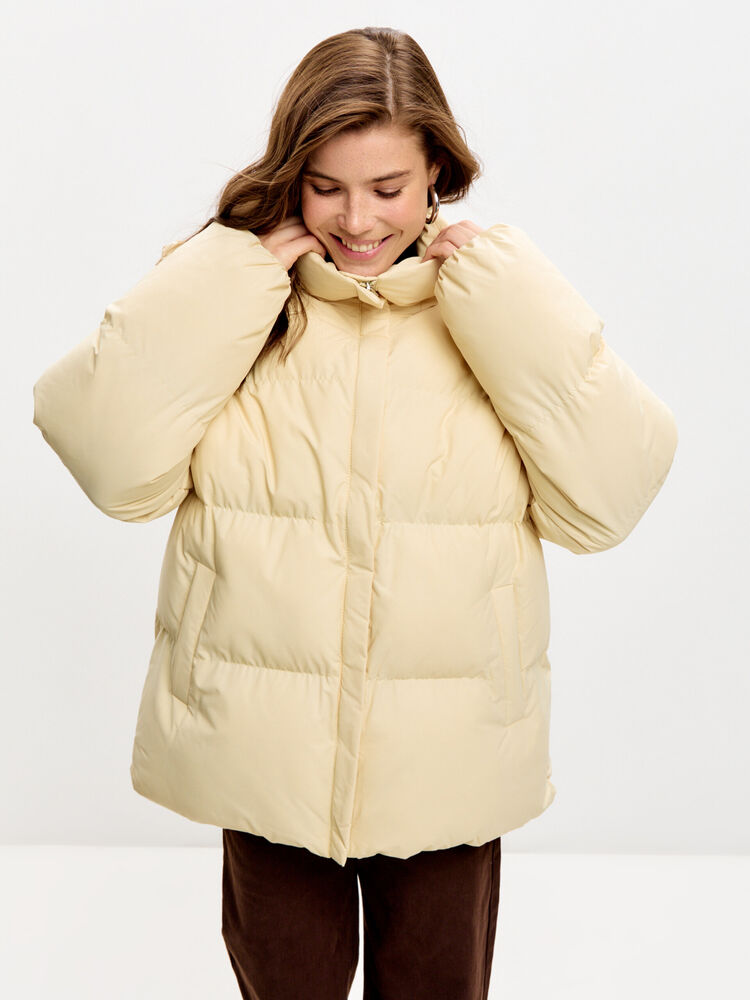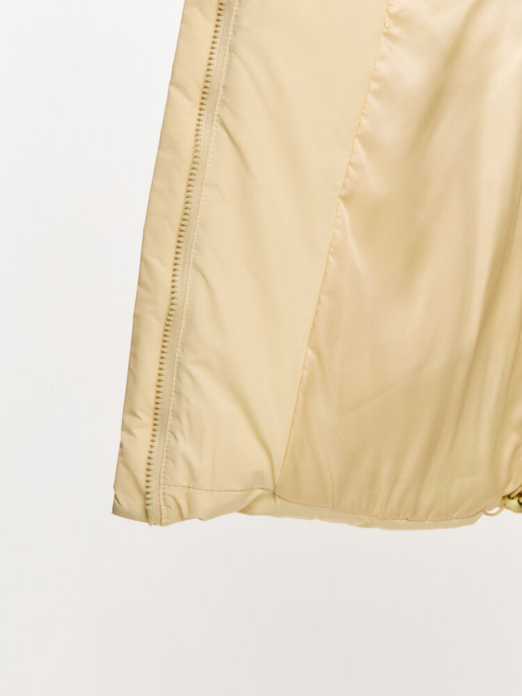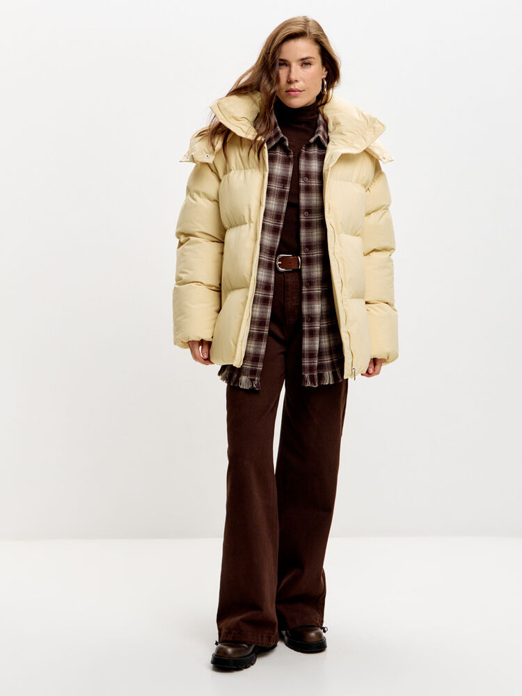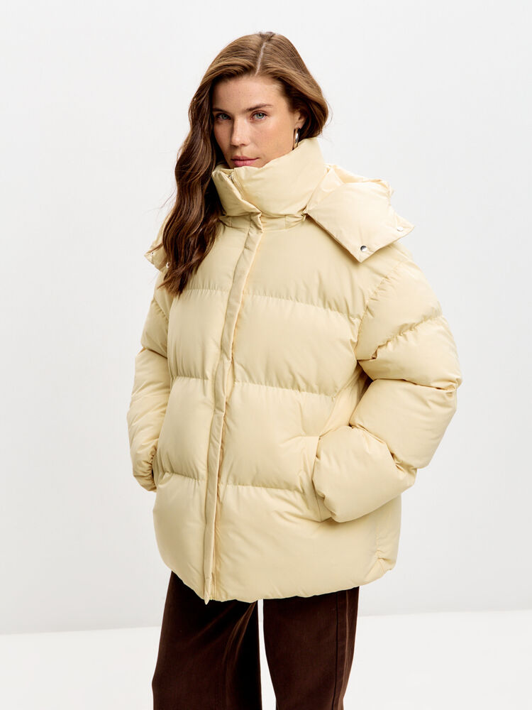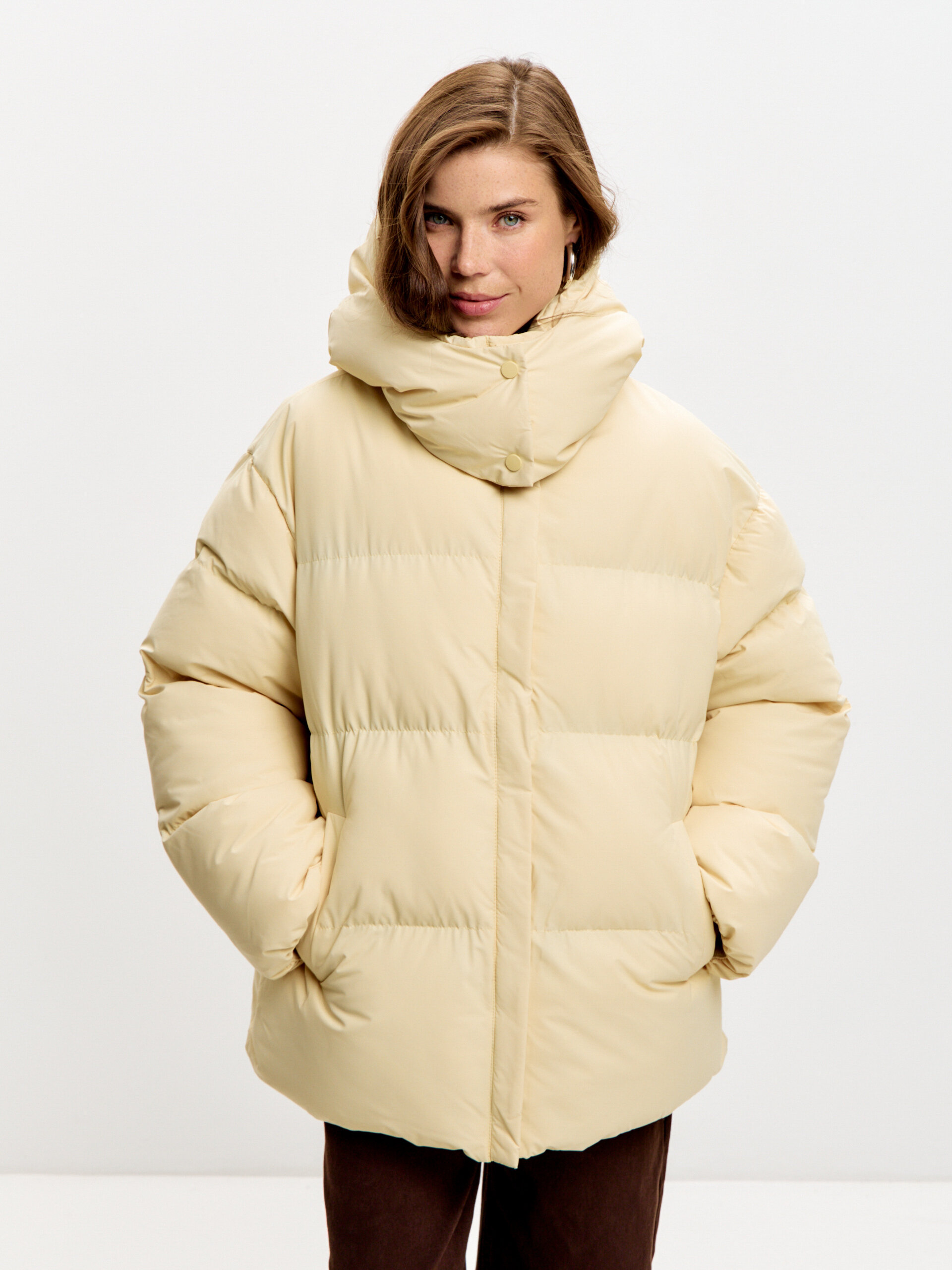 Базовый уютный пуховик. Длина миди и глубокий капюшон, который можно застегнуть на шее, согреют даже в мороз. Есть карманы и пояс, без разрезов по бокам. Застегивается на молнию и кнопки.